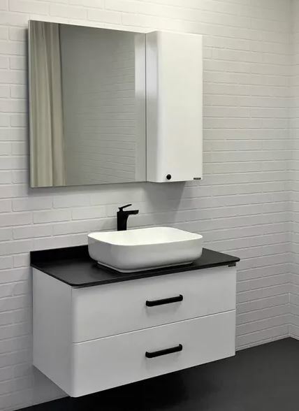 Comforty Амстердам-95 Тумба+столешница черная с раковиной T-Y9378, белый