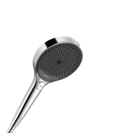 Ручной душ HANSGROHE RAINFINITY с 3 режимами: • PowderRain мелкодисперсная очень мягкая струя-облако (эффект тропического дождя), • Intense PowderRain более интенсивная мелкодисперсная струя (задействован более узкий диаметр центральных форсунок душа) • MonoRain - моноструя, напоминает эффект воды из шланга