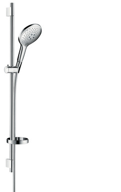 Душевой гарнитур со штангой 90 см и ручным душем RAINDANCE Select S 150 Ручной душ с 3 режимами: • RainAir мягкая широкая струя с воздухом (эффект тропического дождя), • Whirl массажный режим, где более интенсивные струи воды двигаются по спирали и обеспечивают более глубокое воздействие. • Смешанный режим, когда работают 2 типа струи