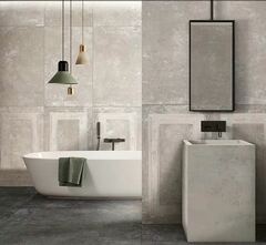 Для максимального формата плитки 120х270 были разработаны декоры как бы с «отпечатком» на штукатурке старинной филенчатой двери и называются BOISERIE (буазери). Такие декоры разработаны только для базовых цветов и соответственно предлагаются в цветах IVORY, ROPE и GREY. Для «классической» линии плитки предлагаются свои декоры в формате 60х120 при толщине 9 мм.