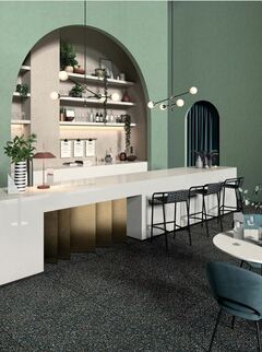 В двух пастельных цветах плитки (GREY и TAUPE) использованы светлые вкрапления с эффектом "полупрозрачности", а для белого и черного (BLACK и WHITE) - цветные, что придает мощный декоративный эффект плитке этих двух цветов.
