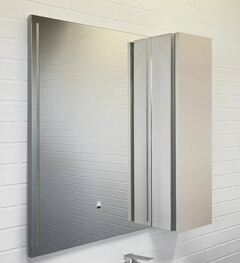 Зеркальное высококачественное полотно с амальгамой на основе серебра. Створка оснащена петлями с системой плавного закрывания. За створкой две полки. Открытие створки производится при помощи вертикальной профильной ручки интегрированной в левую боковую стенку шкафчика. Зеркало оборудовано фронтальной LED подсветкой с бесконтактным выключателем со встроенной функцией регулировки яркости. Температура подсветки 6000-6500K холодный свет. Зеркало-шкаф выпускается только с правым размещением мебельного элемента.