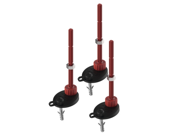 Монтажные опоры для сифона TECEdrainprofile для быстрого выравнивания по высоте и фиксации положения сифона при установке. Диапазон регулировки для "стандартного" сифона 95–194 мм, для "заниженного" сифона 65-164 мм, для "вертикального" сифона 58-157 мм (расстояние от нижнего края опор до верхнего края сифона или верхнего края бесшовного пола).