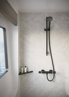Термостат обеспечивает постоянную температуру воды вне зависимости от перепадов давления в системе. Принцип управления: ручка с одной стороны выставляет нужную температуру воды ( в среднем положении комфортные 38-40), ручка с другой стороны включает воду и регулирует напор. Термостат не нагревает и не охлаждает воду, термостатический картридж перераспределяет поток воды. Расход воды составляет 17 л/мин. Стандартное подключение по межосевому расстоянию 15 см, эксцентрики с шумогасителями в комплекте. Для термостата обязательно стандартное расположение воды - горячая вода слева, холодная - справа. В противном случае термостат не работает. Для корректной работы термостата рекомендована установка регуляторов давления воды, чтобы разница между холодной и горячей водой составляла не более 0,5 бара. Ручной душ в комплект не входит и приобретается дополнительно.