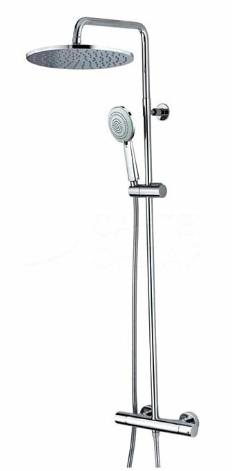 - В комплнет входят: термостат для душа, верхний душ, ручной душ передвижной держатель, шланг