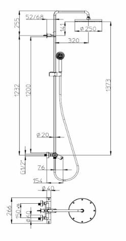 Душевая стойка BOSSINI ELIOS L10402.1.030 с термостатом для ванны, верхним и ручным душем и шлангом, хром:
