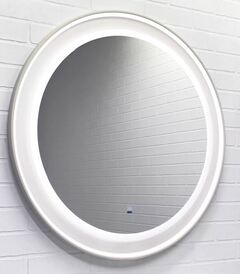 Высококачественное зеркальное полотно с амальгамой на основе серебра. Зеркало оборудовано ореольной и фронтальной Led подсветкой с бесконтактным включателем со встроенной функцией регулировки яркости. Температура подсветки: 6000-6500К холодная. Основа зеркала из МДФ фрезерована кантом по периметру и облицована в матовую пленку цвета "серый шёлк".