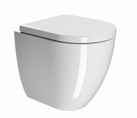 Приставной безободковый унитаз GSI PURA укороченной длины 50 см от стены.