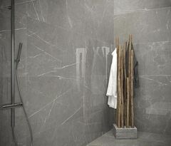 Поскольку основное назначение коллекции – внутренние помещения, фабрика решила выпускать коллекцию исключительно в полированном (lappato) варианте исполнения. Полированная поверхность придает особую глубину цвета и подчеркивает элегантность рисунка мрамора. Цветовые переходы становятся более выраженными, а "трещины" и цветные вены заметнее. Второй аспект – это предназначение плитки из серии NAXOS RHAPSODY преимущественно для интерьеров квартир и частных домов. По этой причине коллекция предлагается в двух основных форматах – 60х60 и 60х120 при толщине плитки 7 мм. Для внутренних приватных интерьеров такой толщины вполне достаточно и позволяет с легкостью использовать плитку как для укладки на пол, так и для облицовки стен, а небольшой формат позволяет легко адаптировать дизайн как к сложным поверхностям небольших помещений, так и к весьма просторным.