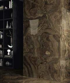 Поскольку основное назначение коллекции – внутренние помещения, фабрика решила выпускать коллекцию исключительно в полированном (lappato) варианте исполнения. Полированная поверхность придает особую глубину цвета и подчеркивает элегантность рисунка мрамора. Цветовые переходы становятся более выраженными, а "трещины" и цветные вены заметнее. Второй аспект – это предназначение плитки из серии NAXOS RHAPSODY преимущественно для интерьеров квартир и частных домов. По этой причине коллекция предлагается в двух основных форматах – 60х60 и 60х120 при толщине плитки 7 мм. Для внутренних приватных интерьеров такой толщины вполне достаточно и позволяет с легкостью использовать плитку как для укладки на пол, так и для облицовки стен, а небольшой формат позволяет легко адаптировать дизайн как к сложным поверхностям небольших помещений, так и к весьма просторным.