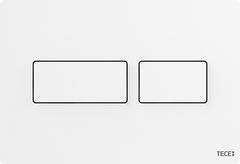 Металлическая панель смыва для унитаза TECEsolid, белая матовая Панель смыва для смывных бачков TECE, фронтальное или верхнее расположение панели смыва. Очень плоская металлическая панель смыва, клавиши с резиновыми накладками, в комплект входят толкатели и крепежные элементы. Панель смыва имеет скрытое винтовое крепление. Совместима с контейнером для гигиенических таблеток