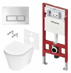 В комплекте ВЫГОДНЕЕ! Получите дополнительную скидку 10% при покупке инсталляции вместе с унитазом TECE SPRING. Комплект поставки: Инсталляция для подвесного унитаза базовой линейки TECESpring Клавиша смыва TECE Spring глянцевый хром Безободковый унитаз TECE Spring Model K. Подвесной унитаз имеет вихверой смыв торнадо, в комплекте тонкая крышка-сиденье Slim с плавным опусканием, металлические петли, быстросъемная.