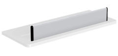 Вместительная полка длиной 30 см позволяет аккуратно разместить все принадлежности для душа. В боковой части полки размещается съемный силиконовый скребок для ухода за стеклом душевой – после приема душа просто смахните капли воды одним движением руки! Таким образом на стекле не останутся следы известкового налета.