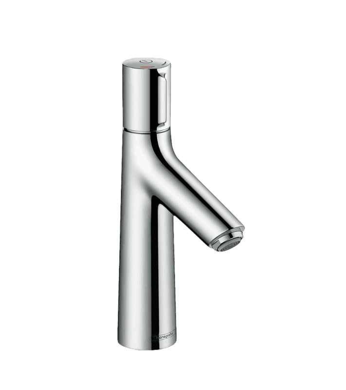Смеситель для раковины немецкой фабрики HANSGROHE с нажимным управлением SELECT – включение/выключение воды осуществляется нажатием на смеситель сверху. Регулировка температуры стандартная - происходит поворотом ручки.
