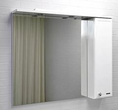Высококачественное зеркальное полотно с амальгамой на основе серебра. Боковой шкаф окрашен белой глянцевой эмалью. Дверца шкафа оснащена петлями с плавным закрыванием. Зеркало оснащено двумя галогеновыми светильниками.