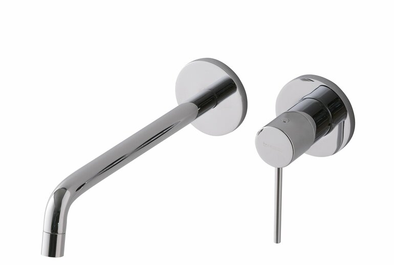 Встраиваемый смеситель для раковины из стены. Длина излива до центра аэратора 226 мм. За счет расположения аэратора под углом струя бьет вперед, что обеспечивает комфортное мытье рук. Струя мягкая, воздушная, не создает брызг. Максимальный расход воды при 3 барах: 6 л/мин