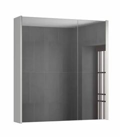 Створки оснащены петлями с плавным закрыванием. Высококачественное зеркальное полотно с амальгамой на основе серебра. Боковые стенки покрыты белой глянцевой эмалью. Обе боковые створки зеркала открываются наружу. За широкой створкой две горизонтальные полки, за узкой одна.